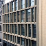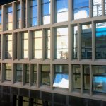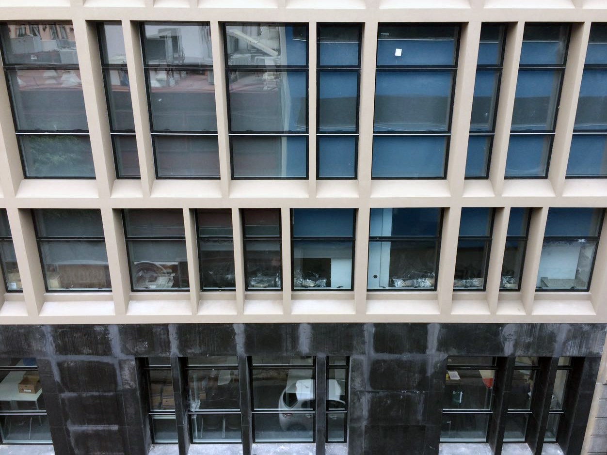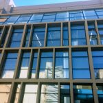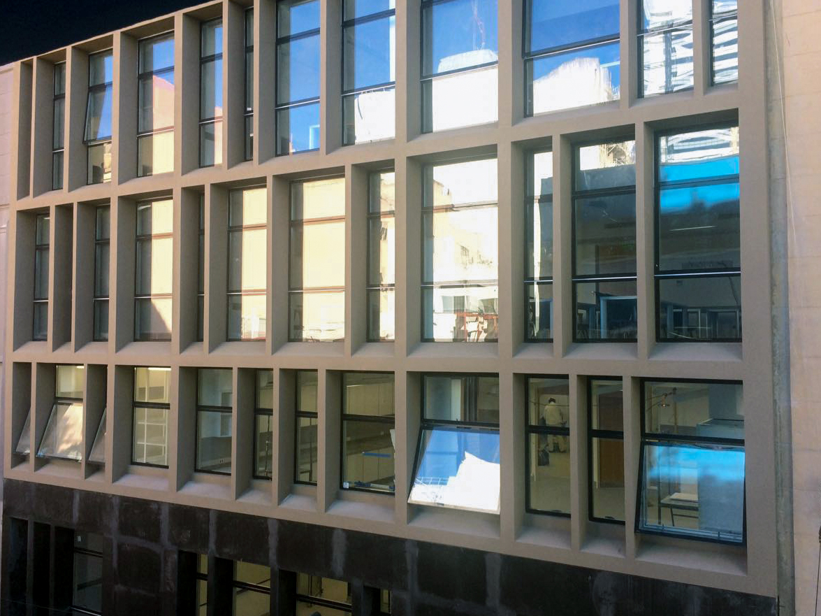 Obra de la #constructora Pellegrinet Universidad CAECE sistema Piel de Vidrio con vidrios DVH. Color de las ‎aberturas: anodizado natural.