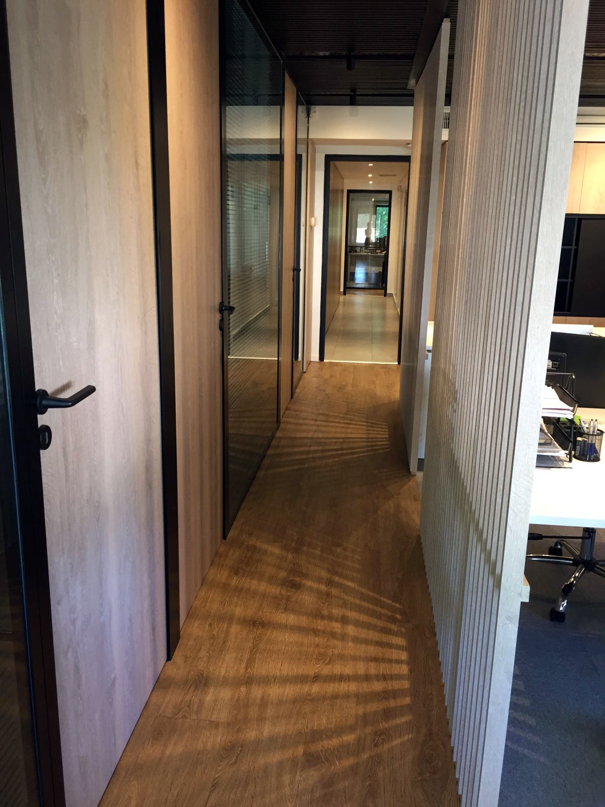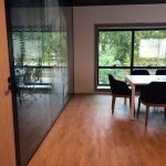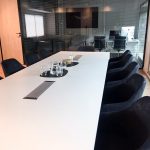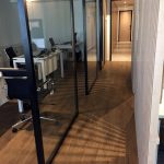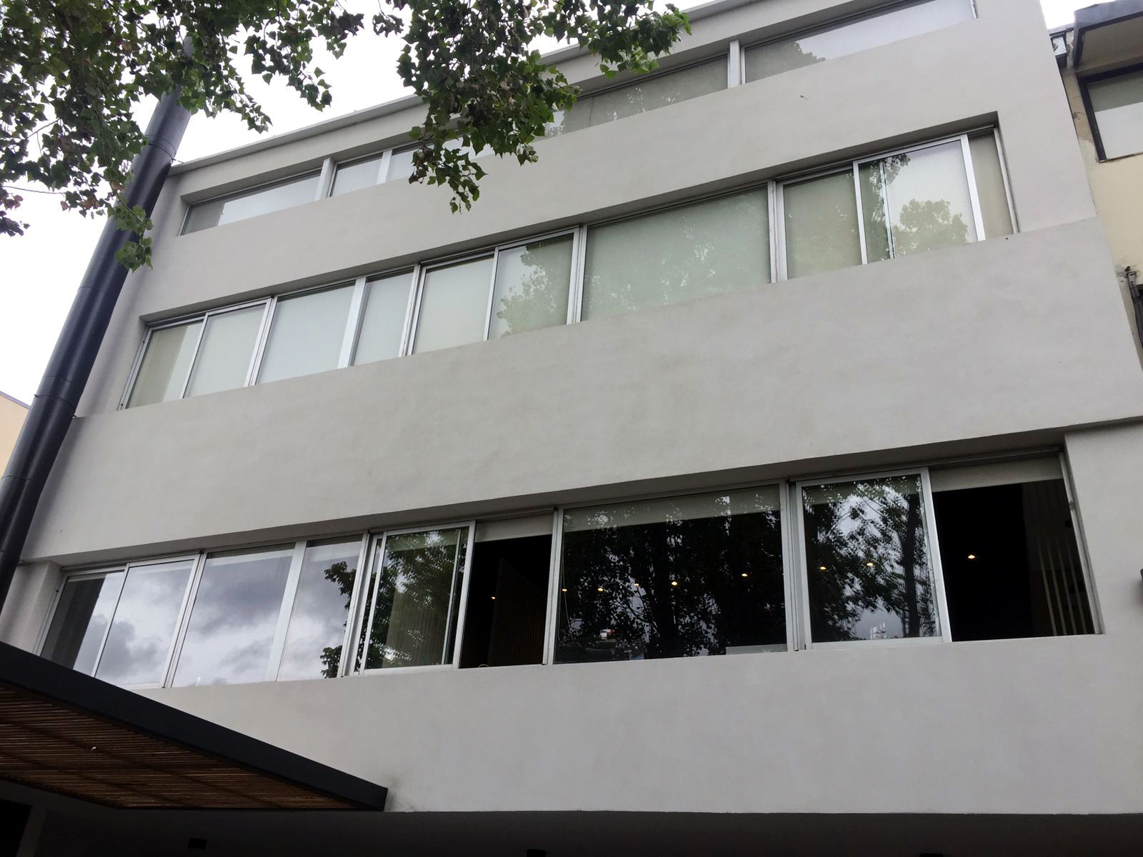 Obra del Grupo Gaman con Sistema Piel de vidrio y aberturas Línea Módena con vidrios Laminados y DVH Super Grey. Color de las aberturas: pintado negro y anodizado natural.